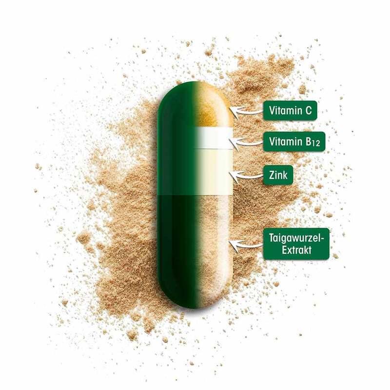 Nahrungsergänzungsmittel mit Vitamin B12, Vitamin C, Zink und Taigawurzel-ExtraktZutaten