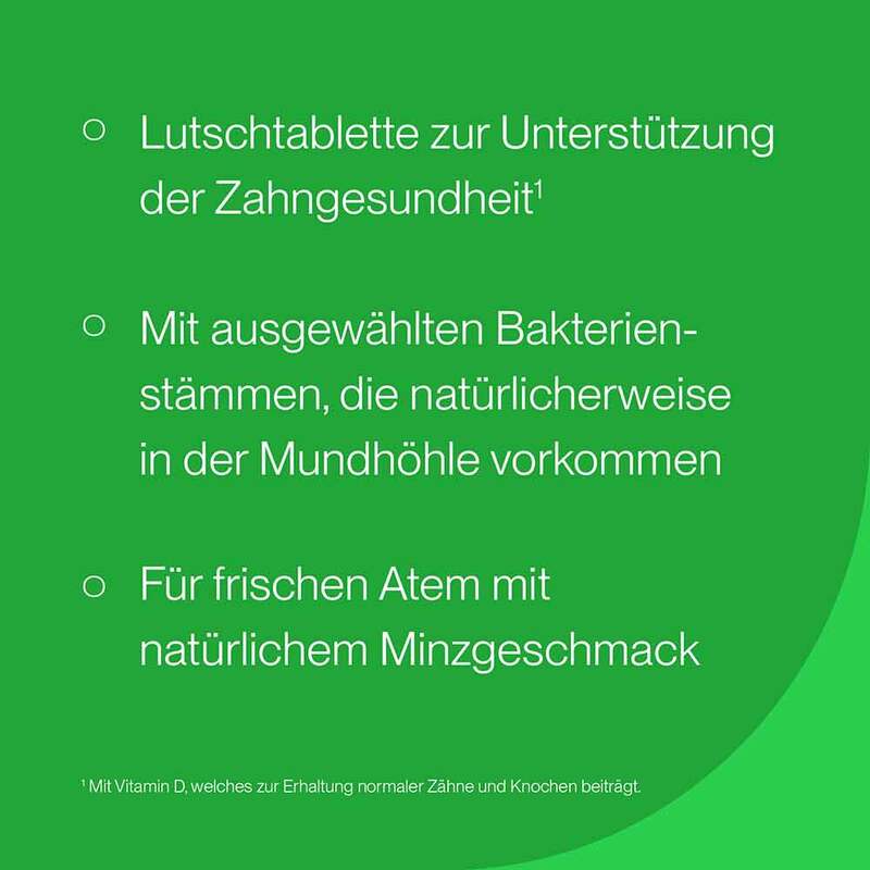 - Multi-Stamm-Probiotikum mit drei ausgewählten patentierten Bakterienstämmen, die natürlicherweise in der Mundhöhle vorkommen