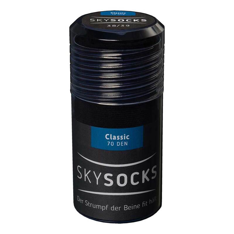 Der SKYSOCKS Classic begeistert mit seinem geschmeidigen, glatten Maschenbild. Das Tragegefühl ist durch das elastische Garn weich und angenehm. Die sanfte Stützwirkung der SKYSOCKS Classic entlastet die Beine und hält sie vital und fit.