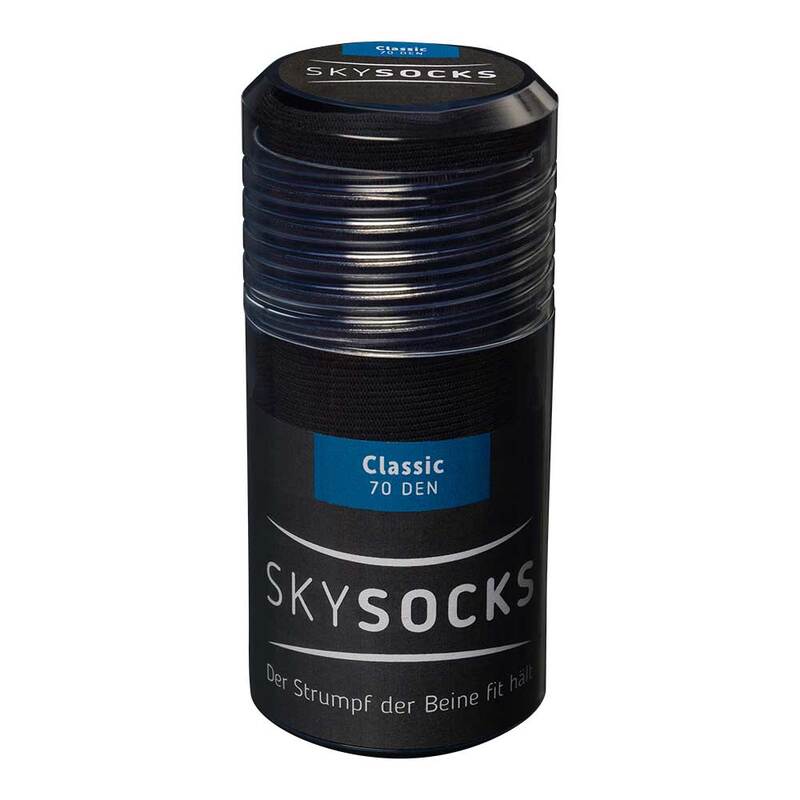 Der SKYSOCKS Classic begeistert mit seinem geschmeidigen, glatten Maschenbild. Das Tragegefühl ist durch das elastische Garn weich und angenehm. Die sanfte Stützwirkung der SKYSOCKS Classic entlastet die Beine und hält sie vital und fit.
