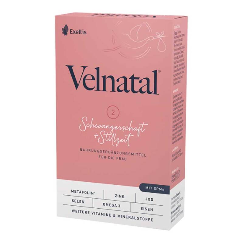 Velnatal® Schwangerschaft + Stillzeit enthält eine Kombination aus Vitaminen, Spurenelementen, Fettsäuren und SPMs, die alle Entwicklungsphasen deines Babys unterstützt. Auch nach der Geburt und während der gesamten Stillphase seid ihr beide mit Velnatal® Schwangerschaft + Stillzeit gut versorgt.