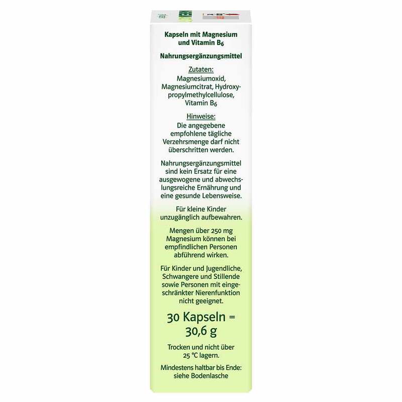 Magnesiumoxid, Magnesiumcitrat, Hydroxypropylmethylcellulose, Vitamin B6