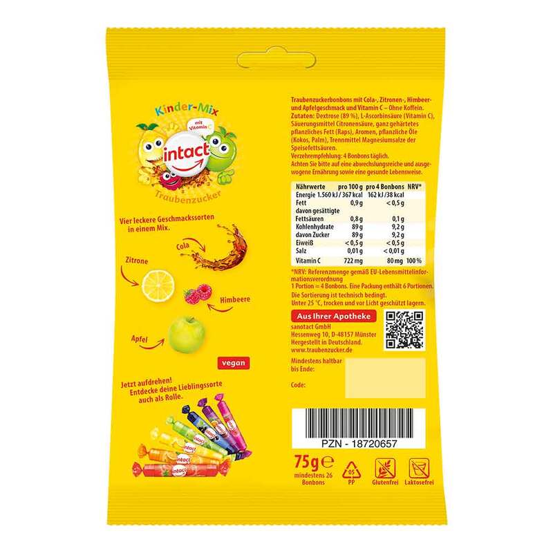 Intact Traubenzucker Beutel Kinder-Mix + Vitamin C, 75 g