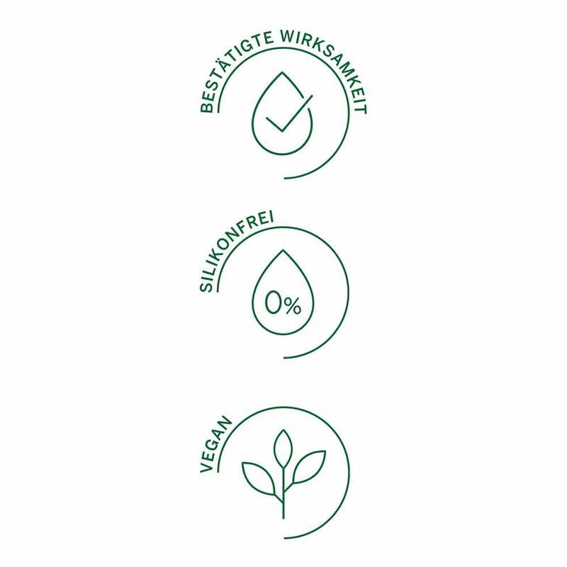 Die Haarpflege kommt ohne Silikone aus. Bei der Umstellung auf silikonfreie Produkte können die Haare zunächst angegriffen, stumpf oder spröde aussehen. Es dauert eine Weile, bis die Haarstruktur sich öffnet und wertvolle Nährstoffe wie Vitamine, Mineralstoffe oder Antioxidantien aufnehmen kann.