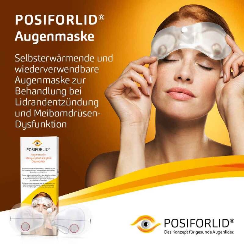Die selbsterwärmende POSIFORLID® Augenmaske hat ein neues Design und bietet eine einfachere Handhabung.Die POSIFORLID® Augenmaske dient der einfachen und effektiven Wärmebehandlung bei Blepharitis und Meibomdrüsen-Dysfunktion. Darüber hinaus ist sie auch zur Behandlung bei Gersten- und Hagelkorn geeignet. Die zur Wärmebehandlung erforderliche Temperatur wird konstant und langanhaltend (ca. 45 °C über 10 Minuten) gehalten. Jede Augenmaske ist ca. 90-mal wiederverwendbar.