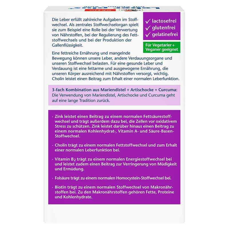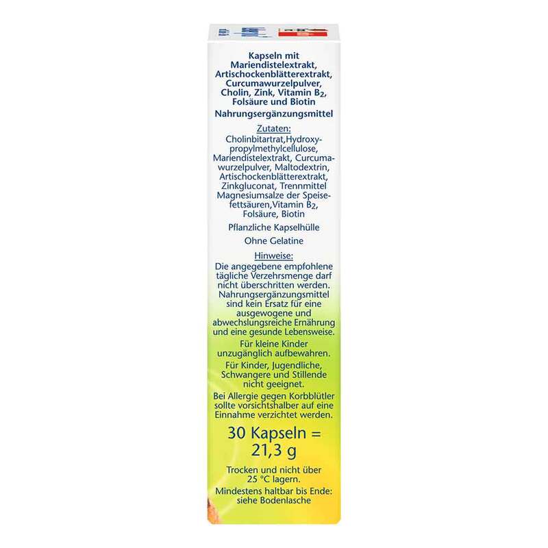 - Mit Mariendistelextrakt, Artischockenextrakt und Curcumawurzelpulver