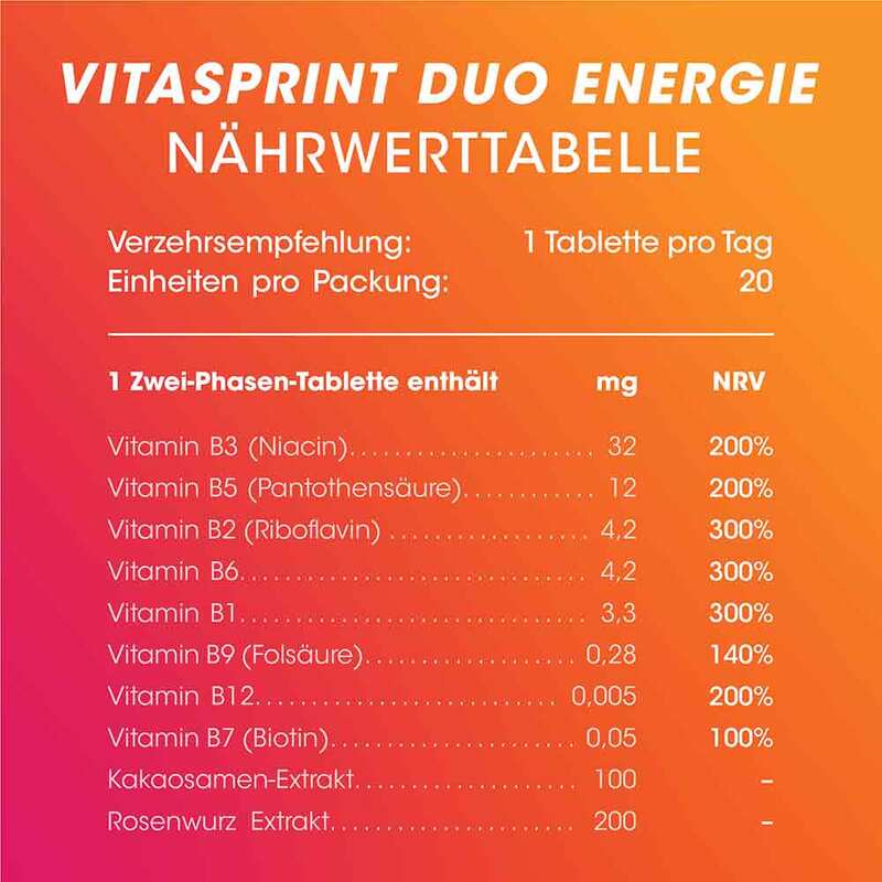 - das können Sie spüren: Vitasprint Duo Energie unterstützt den Energielevel sofort und langanhaltend*