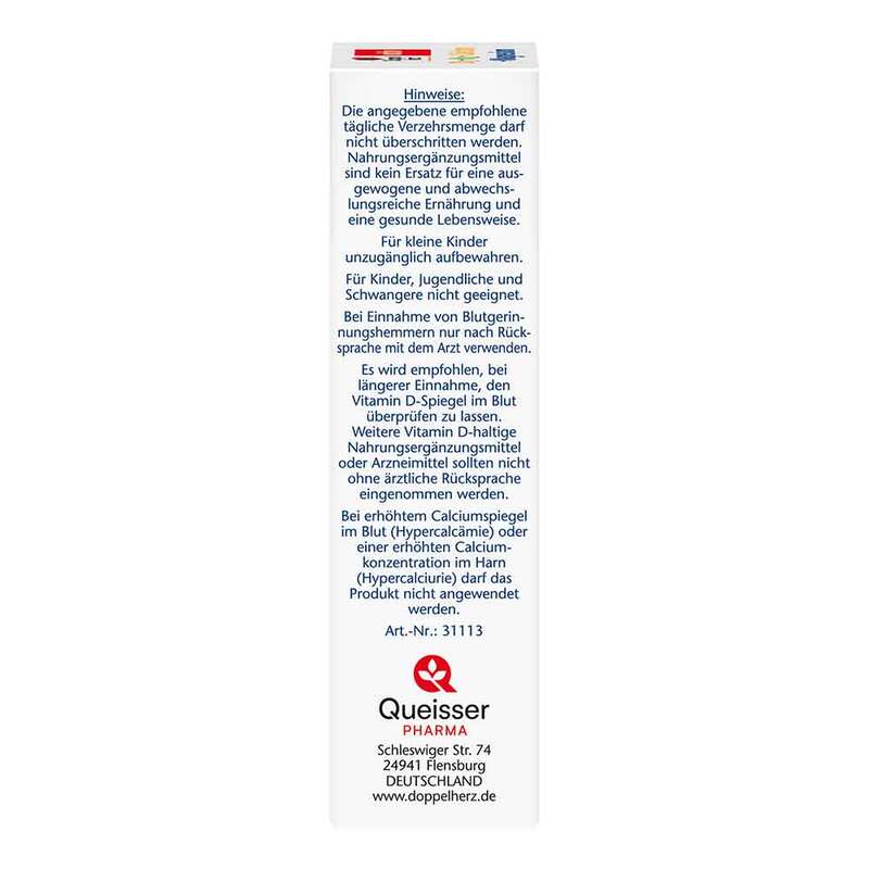 Es wird empfohlen, bei längerer Einnahme, den Vitamin D-Spiegel im Blut überprüfen zu lassen. Weitere Vitamin D-haltige Nahrungsergänzungsmittel oder Arzneimittel sollten nicht ohne ärztliche Rücksprache eingenommen werden.