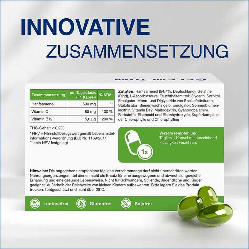 In Gelencium Cannabis Plus Kapseln haben deutsche Wissenschaftler wertvolles Öl aus den Samen der Pflanze Cannabis sativa in Kapselform aufbereitet und mit essenziellen Vitaminen vereint. Der neue einzigartige Cannabis-Plus-Komplex erfüllt höchste Qualitätsstandards, wirkt nicht berauschend und ist rezeptfrei in der Apotheke erhältlich.