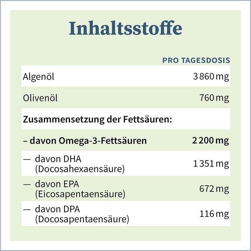 - Nahrungsergänzungsmittel mit Omega-3 aus Algenöl