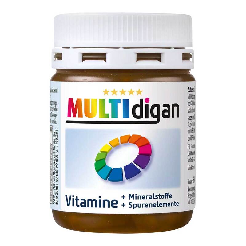 Multidigan© eignet sich hervorragend zur täglichen Rundum-Ergänzung mit den wichtigsten Nährstoffen. Mit nur einer Kapsel Multidigan© ergänzen Sie Ihre Ernährung bequem mit gleich 22 essenziellen Vitaminen, MineralstoFen und Spurenelementen, die eine Rolle spielen für das Immunsystem, die Energieversorgung, Psyche, Nerven, Haare, Nägel, Haut, Knochen, Zähne, Sehkraft, reproduktive Gesundheit und für den Stoffwechsel.*