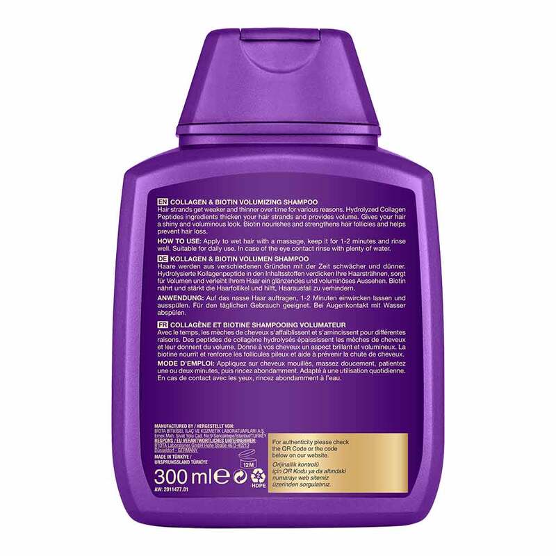 Die Hydrolysierte Kollagenpeptide in den Inhaltsstoffen verdicken Ihre Haarsträhnen, sorgen für Volumen und verleihen dem Haar ein glänzendes und voluminöses Aussehen.