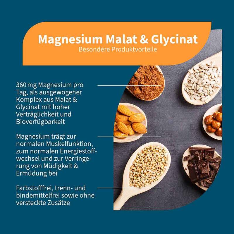 - Enthält zwei hochwertige Magnesiumverbindungen: Magnesiummalat und Magnesiumbisglycinat