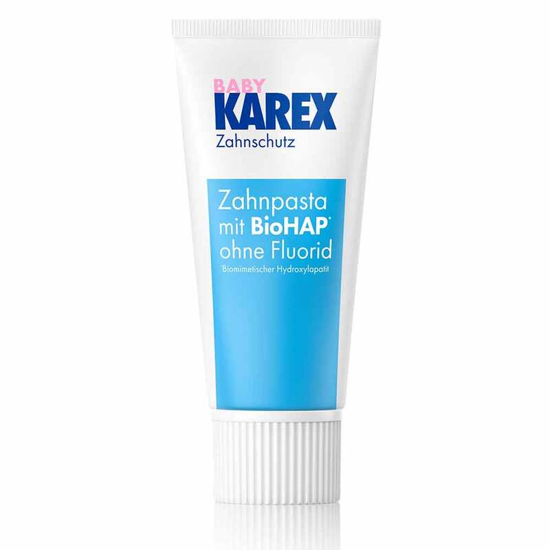 Die Baby Karex Zahnpasta ist der ideale Einstieg in das tägliche Zähneputzen für die ersten Zähne unserer Kleinen. Vom ersten Zahn an reinigt sie sanft und schützt gleichzeitig wirksam vor Karies - mit BioHAP ohne Fluorid.