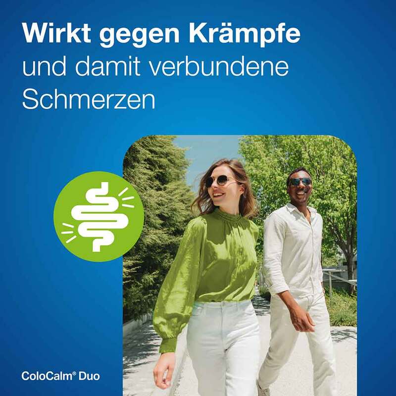 ColoCalm® Duo ist ein Medizinprodukt, das zur Linderung der Symptome von Blähungen und Flatulenz aufgrund der Ansammlung von Gasen beiträgt. ColoCalm® Duo wirkt gegen Krämpfe und damit verbundene Schmerzen und vermindert Flatulenz und Blähungen.