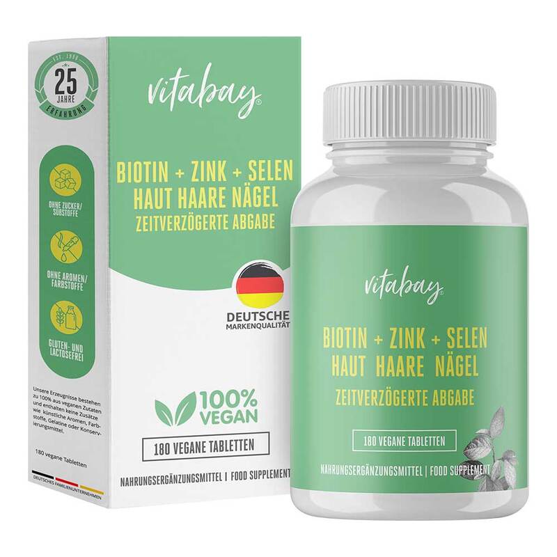 Biotin + Zink + Selen Haut + Haare + Nägel vegan Tabletten, 180 St