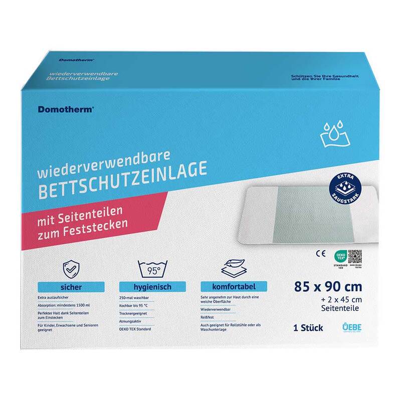 Die Domotherm Bettschutzeinlagen werden bei Inkontinenz eingesetzt. Sie besitzen Flügel zur besseren Haftung und sind wiederverwendbar.