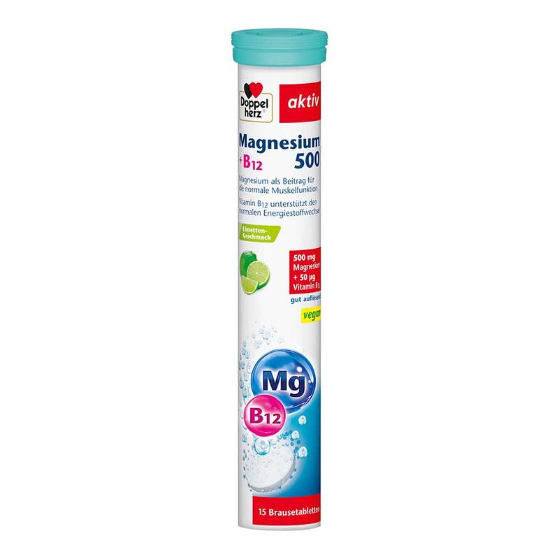 Doppelherz Magnesium 500 + B12 Brausetabletten, 15 St