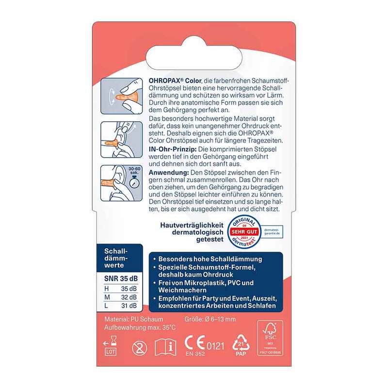 Ohropax color Schaumstoff In-Ohr Stöpsel, 8 St