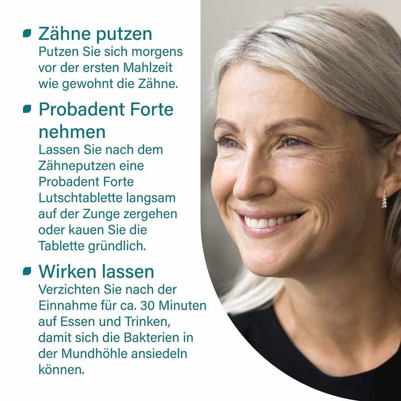 Nupure probadent forte enthält 5 Milliarden KBE (koloniebildende Einheiten) aus drei ausgewählten Bakterienstämmen, ergänzt durch Biotin und Vitamin D3. Der frische Pfefferminzgeschmack sorgt für einen angenehmen Start in den Tag – ganz ohne Zucker.