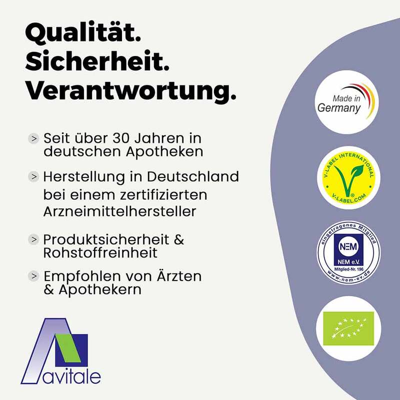 Selen kommt sowohl in tierischen als auch in pflanzlichen Nahrungsmitteln vor. Der menschliche Körper kann es nicht selbst bilden, er muss es regelmäßig über selenhaltige Lebensmittel aufnehmen. Avitale Selen Tabletten liefern mit 100 mcg Selen als Natriumselenat eine gute Versorgung wichtiger Körperfunktionen* mit diesem essentiellen Spurenelement.