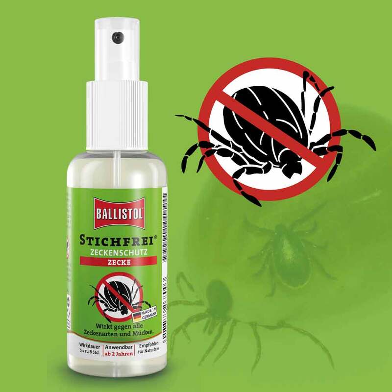 Schützen Sie sich und Ihre Familie vor Zeckenstichen – mit langanhaltendem Schutz. Ballistol Stichfrei® Zeckenschutz wurde speziell für Naturfreunde, Outdoor-Sportler, Jäger, Förster und Familien entwickelt. Mit bis zu 8 Stunden Schutz vor Zecken und anderen stechenden Insekten können Sie die Natur genießen.