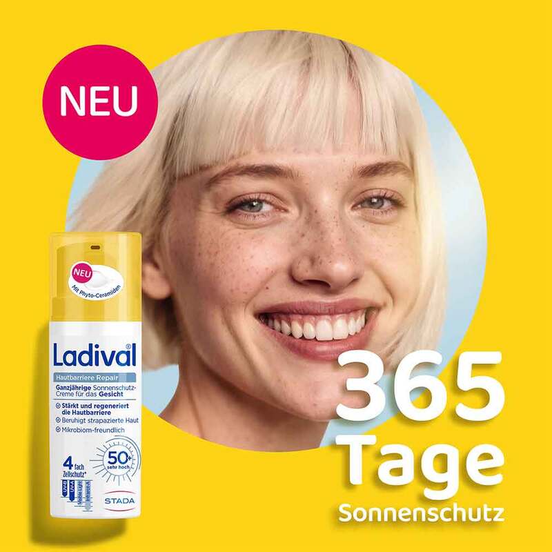 Wenn die Haut aus dem Gleichgewicht geraten ist, braucht sie besonderen Schutz und Pflege. Die Ladival® Hautbarriere Repair Sonnenschutz-Creme LSF 50+ wurde speziell für empfindliche und strapazierte Gesichtshaut entwickelt. Sie stärkt und regeneriert die Hautbarriere, reduziert den Feuchtigkeitsverlust und hilft so, das natürliche Gleichgewicht der Haut zu bewahren.