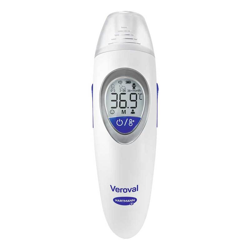 Ohr- & Stirnthermometer für schnelles Fiebermessen – Ideal für Erwachsene & KinderDas Veroval® family Infrarot-Fieberthermometer von HARTMANN ist ein modernes 3-in-1 Fiebermessgerät für die ganze Familie. Es misst schnell und einfach die Körpertemperatur im Ohr, auf der Stirn oder die Temperatur von Objekten und Flüssigkeiten. Dank präziser Infrarot-Technologie liefert das Stirn- und Ohrthermometer verlässliche Ergebnisse – ideal für Babys, Kinder und Erwachsene.