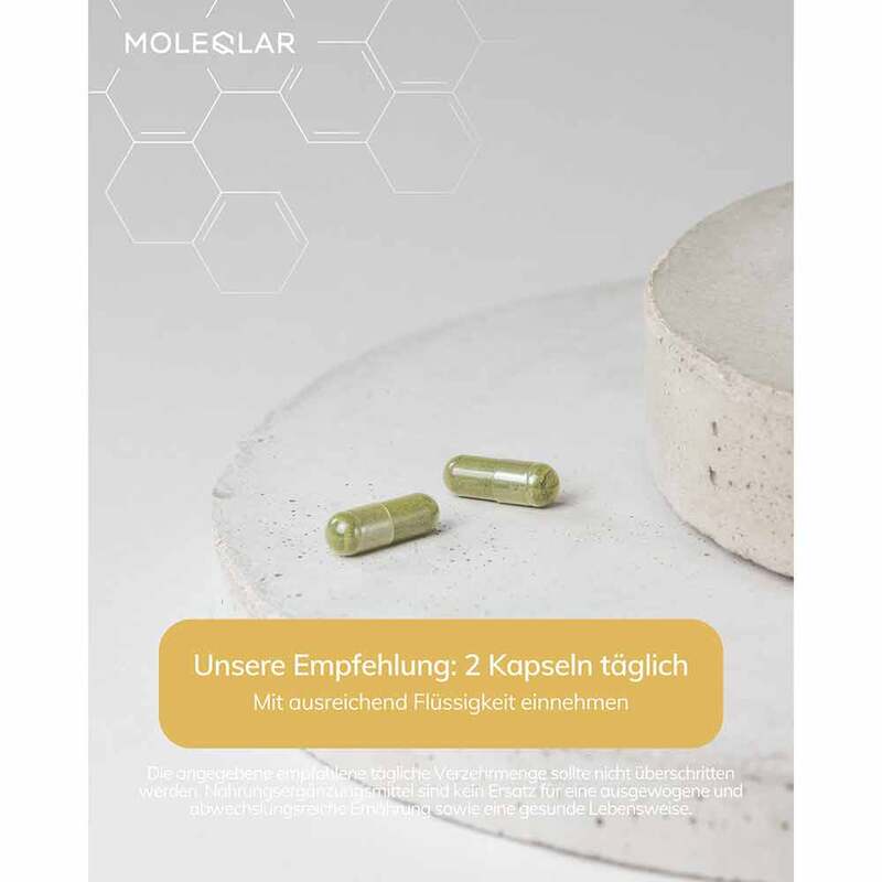 Die angegebene, empfohlene tägliche Verzehrmenge darf nicht überschritten werden. Nahrungsergänzungsmittel sind kein Ersatz für eine ausgewogene und abwechslungsreiche Ernährung.