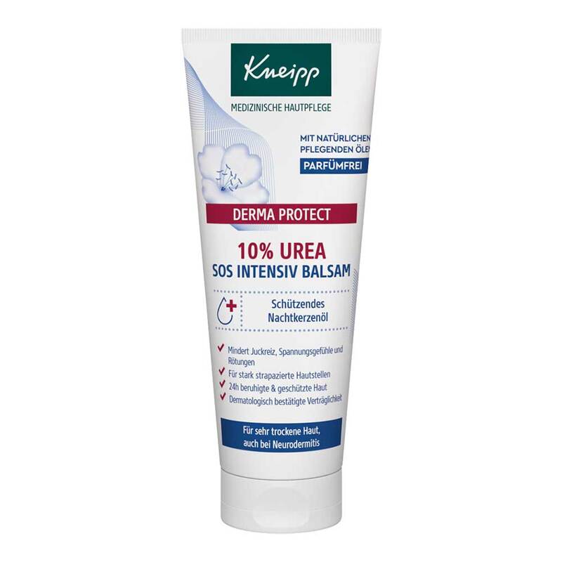 Der parfümfreie Intensivbalsam mit schützendem Nachtkerzenöl, beruhigendem Panthenol, Vitamin E und 10% feuchtigkeitsspendendem Urea pflegt spürbar raue und rissige Haut, mindert Juckreiz und Rötungen.