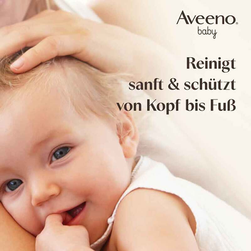 Aveeno baby daily care seifenfreies Bad & Waschgel mit beruhigendem präbiotischem Hafermehl, Aloe & Kamille nährt, beruhigt & schützt empfindliche Babyhaut ab Tag 1. Es reinigt sanft, hinterlässt ein mit Feuchtigkeit versorgtes Hautgefühl und ist für Neugeborene und Kindern mit normaler bis trockener, empfindlicher Haut geeignet.