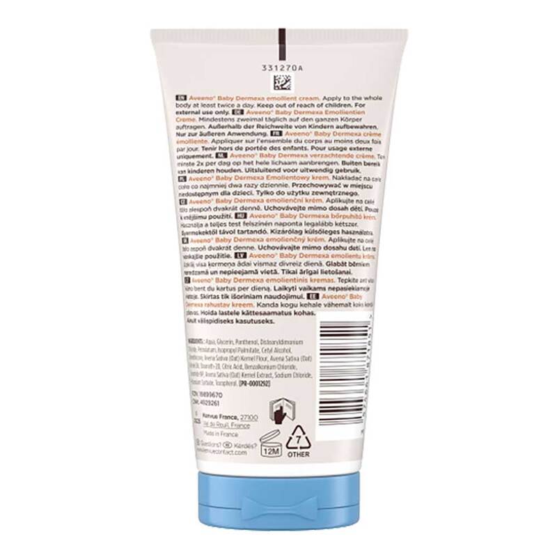 Aveeno baby Dermexa Emollientien Creme mit 3-fachem Haferkomplex, Ceramiden & Panthenol, beruhigt sehr trockene, juckende Babyhaut & spendet intensive Feuchtigkeit - klinisch erwiesen. Sie ist für Neugeborene und Kinder mit sehr trockener, juckender und zu Neurodermitis neigender Haut geeignet.