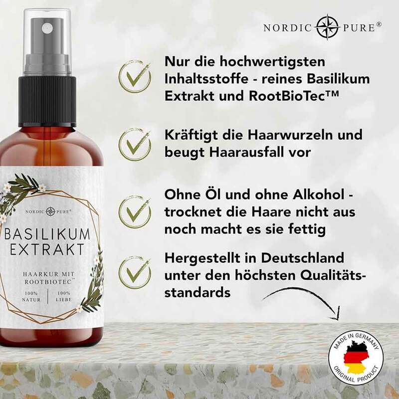Reines Basilikum-Extrakt und RootBioTec™, ölfrei und alkoholfrei - natürliche Haarkur für Frauen und Männer