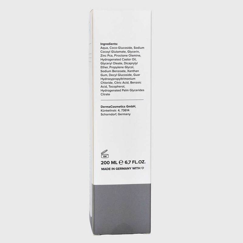Aqua, Coco-Glucoside, Sodium Cocoyl Glutamate, Glycerin, Zinc Pca, Piroctone Olamine, Hydrogenated Castor Oil, Glyceryl Oleate, Dicaprylyl Ether, Propylene Glycol, Sodium Benzoate, Xanthan Gum, Decyl Glucoside, Guar Hydroxypropyltrimonium Chloride, Citric Acid, Benzoic Acid, Tocopherol, Hydrogenated Palm Glycerides Citrate