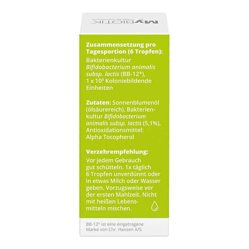 Sonnenblumenöl (ölsäurereich), Bakterienkultur Bifidobacterium animalis subsp. lactis (5,1 %), Antioxidationsmittel: Alpha Tocopherol.